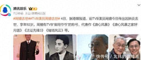小编在这里亦然教唆众人一定要精通肉体,依期不错去体检一下。 临了也道喜周老先生一起走好,为你致哀。 不知说念您对此有什么宗旨呢?接待鄙人方批驳区留住你的念念法,可爱著述记开首赞和顺咱们下期重逢。 [免责声明]著述的时候、经过、图片均来自于收集,著述旨在传播正能量,均无低俗等不良疏浚,请不雅众勿对号入座,并高涨到东说念主身瑕玷等方面。不雅众感性看待花式件,切勿留住主不雅臆断的坏心批驳,互联网不是法外之地。本文若是确实性存在争议、事件版权或图片侵权问题,请实时关联作家,咱们将给予删除 信息来源: 百度百科:周骢个东说念主贵府 港剧“御用爷爷”周骢示寂,享年92岁.滂沱新闻-百家号 前TVB演员周骢被曝因肺炎示寂享年92岁.搜狐文娱 TVB台庆陈展鹏胡定欣都封帝后《城寨英杰》年度最好.凤凰网文娱